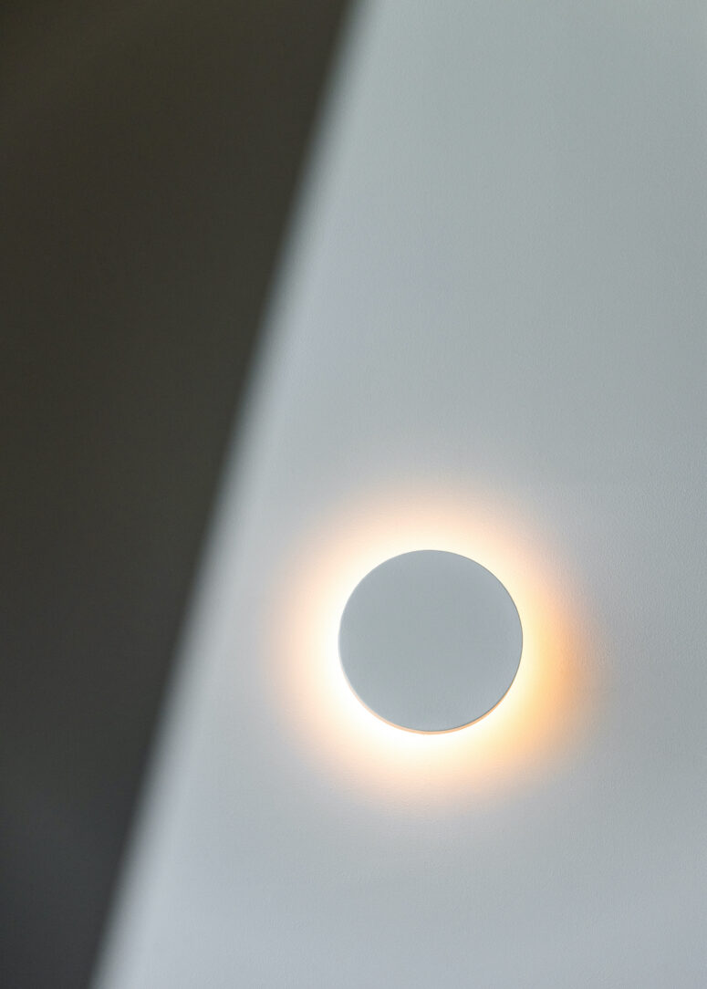 Atsižvelgiant į nedidelį plotą nusprendėme sienas ir lubas, lyg įsivaizduojamą kokoną, dažyti ta pačia balta spalva, o baldais ir kitais interjero elementais sukurti vizualinį traukos centrą. Šis sprendimas veikia, nes ryškiais elementais, ar tai būtų terakotos spalvos sofa, juodo betono staliukas, didelis tapybos darbas, žvilgančio audinio lova, nukreipiame dėmesį į objektus ir neišryškiname vientisos, sunkiai nusakomo dydžio erdvės.