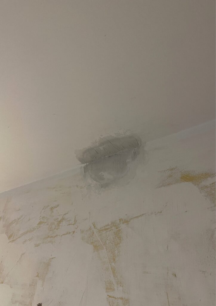 Beje, šio tipo butuose yra kelios elektros dėžutės, kurias vadinu „šypsenėlėmis“. Su jomis reikia elgtis labai atsargiai! Atidengus dėžutės dangtelį savo bute, jis gali iškristi ir pas kaimynus! Elektrikai apie tai įspėjo, bet dirbo atsargiai ir pokalbio su kaimynais išvengėme. Šias angas meistrai vėliau izoliuoja bei uždengia iš gipso kartono plokštės išpjautomis apskritimo puselėmis. Tuomet viskas yra užglaistoma, išlyginama ir dažoma.